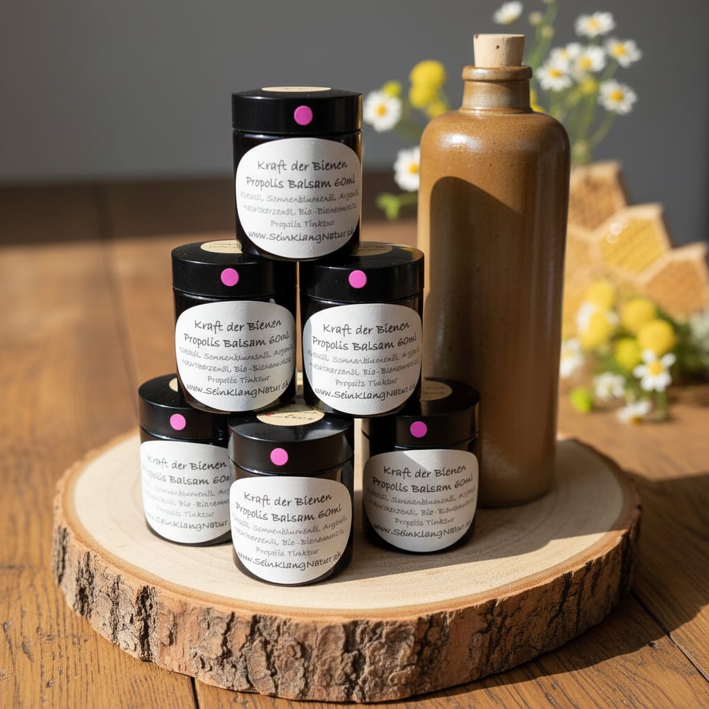 Jede Berührung mit Propolis-Salbe ist wie ein sanfter Schutzmantel aus der Natur…wärmend, stärkend und regenerierend. Sie hilft dir nicht nur, deine Haut intensiv zu pflegen, sondern schenkt dir auch einen Moment des Innehaltens, des tiefen Atemholens und der Rückkehr zu dir selbst.