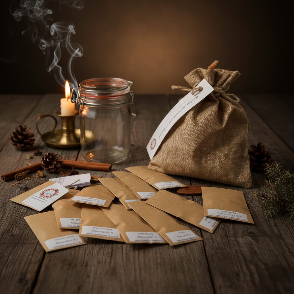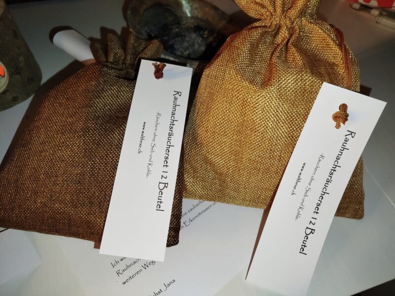In meinem liebevoll zusammengestellten Rauhnachts-Räucherset findest du zwölf einzigartige Räuchermischungen aus heimischen Kräutern, Blüten und Harzen. Jede Mischung öffnet ein Tor zu einem bestimmten Thema: